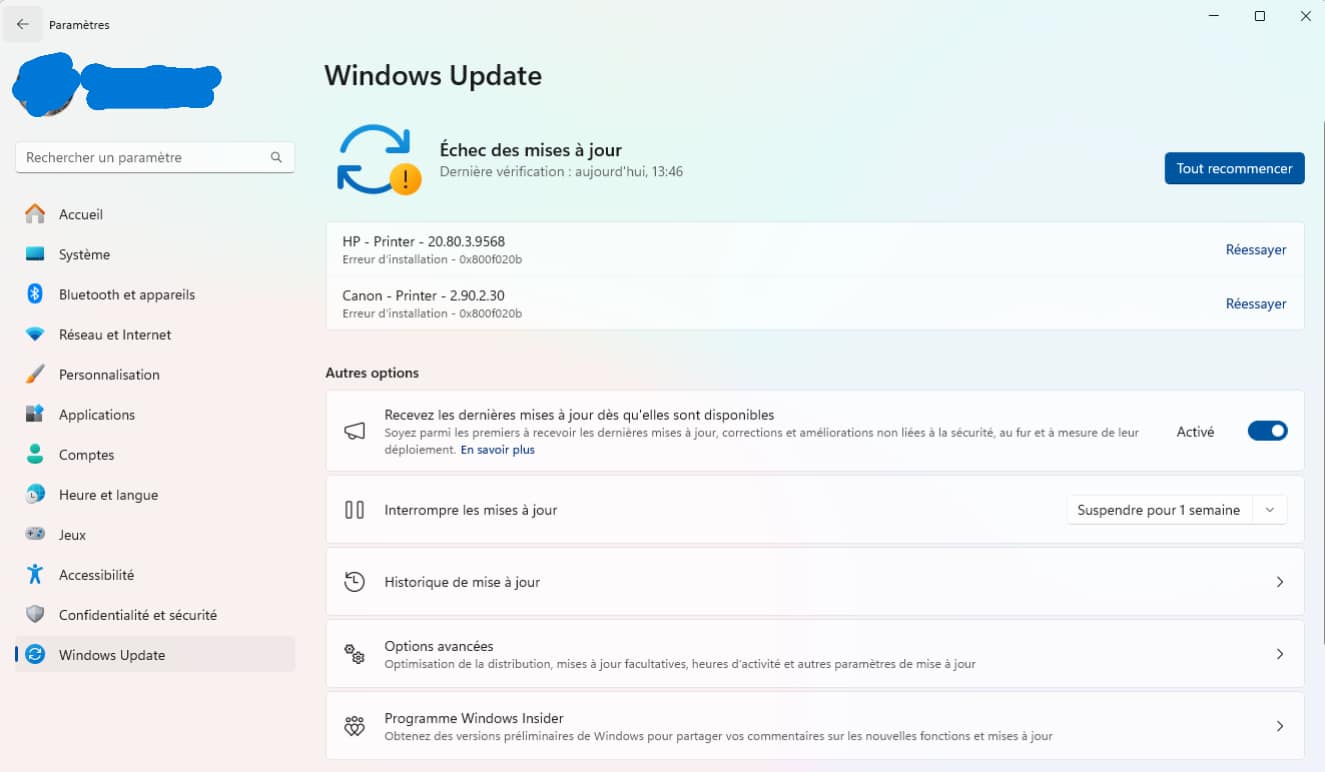 - Paramètres > Mise à jour et sécurité > Windows Update > Activer les mises à jour automatiques.