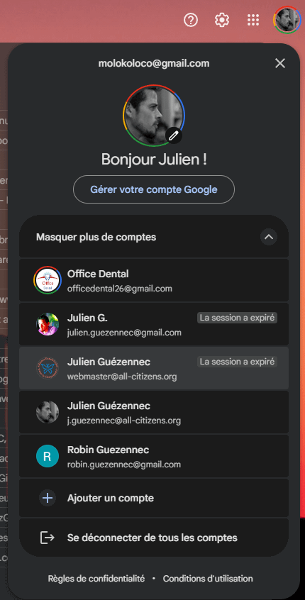 Ce sont des identifiants Google. Vous pouvez vous connecter avec ses identifiants nom.prenom@all-citizens.org à notre organisation sur les services Google (Gmail, Meet, Drive, Photos, etc…).