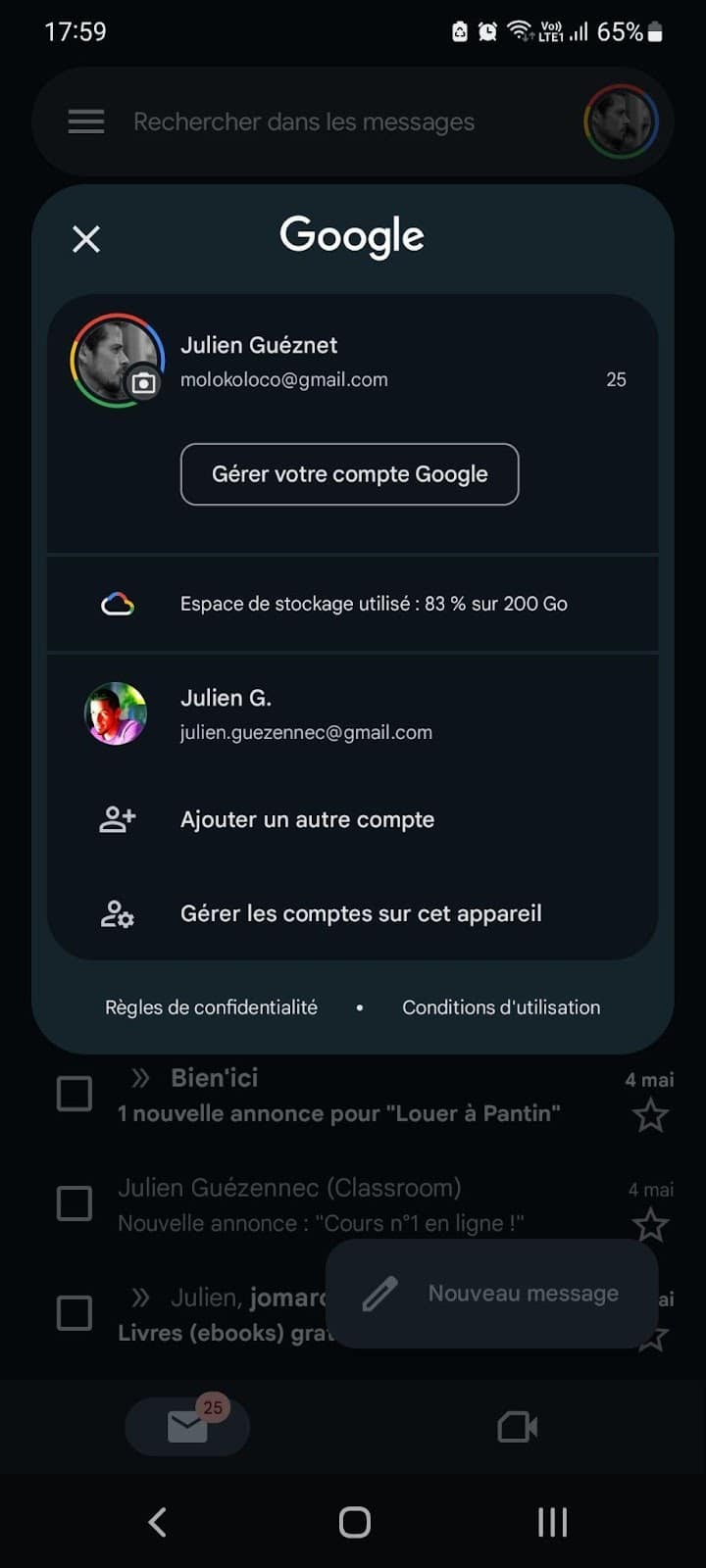 - Ajouter un autre compte de messagerie dans l’application Gmail