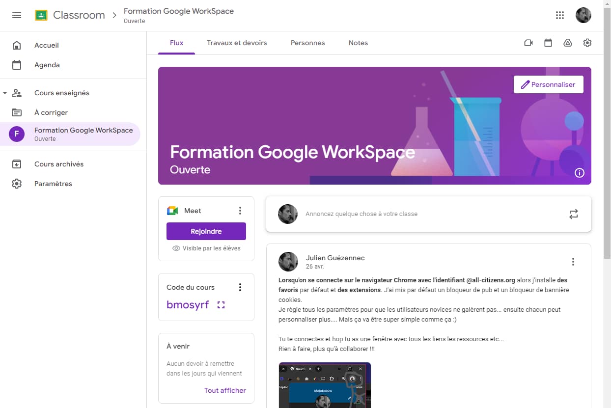 - Espace formation : https://classroom.google.com/c/Njc1ODA4MjU1MTc5?cjc=bmosyrf